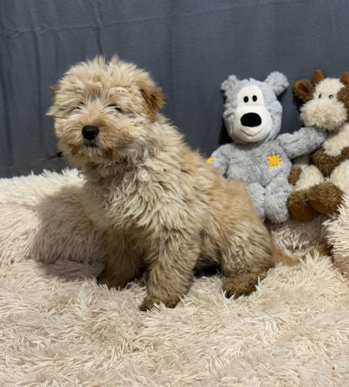 Keeno wird voraussichtlich 40–45cm groß und 11–18 kg schwer – ein aktiver, mittelgroßer Familienhund, der Abenteuer genauso liebt wie Nähe.
